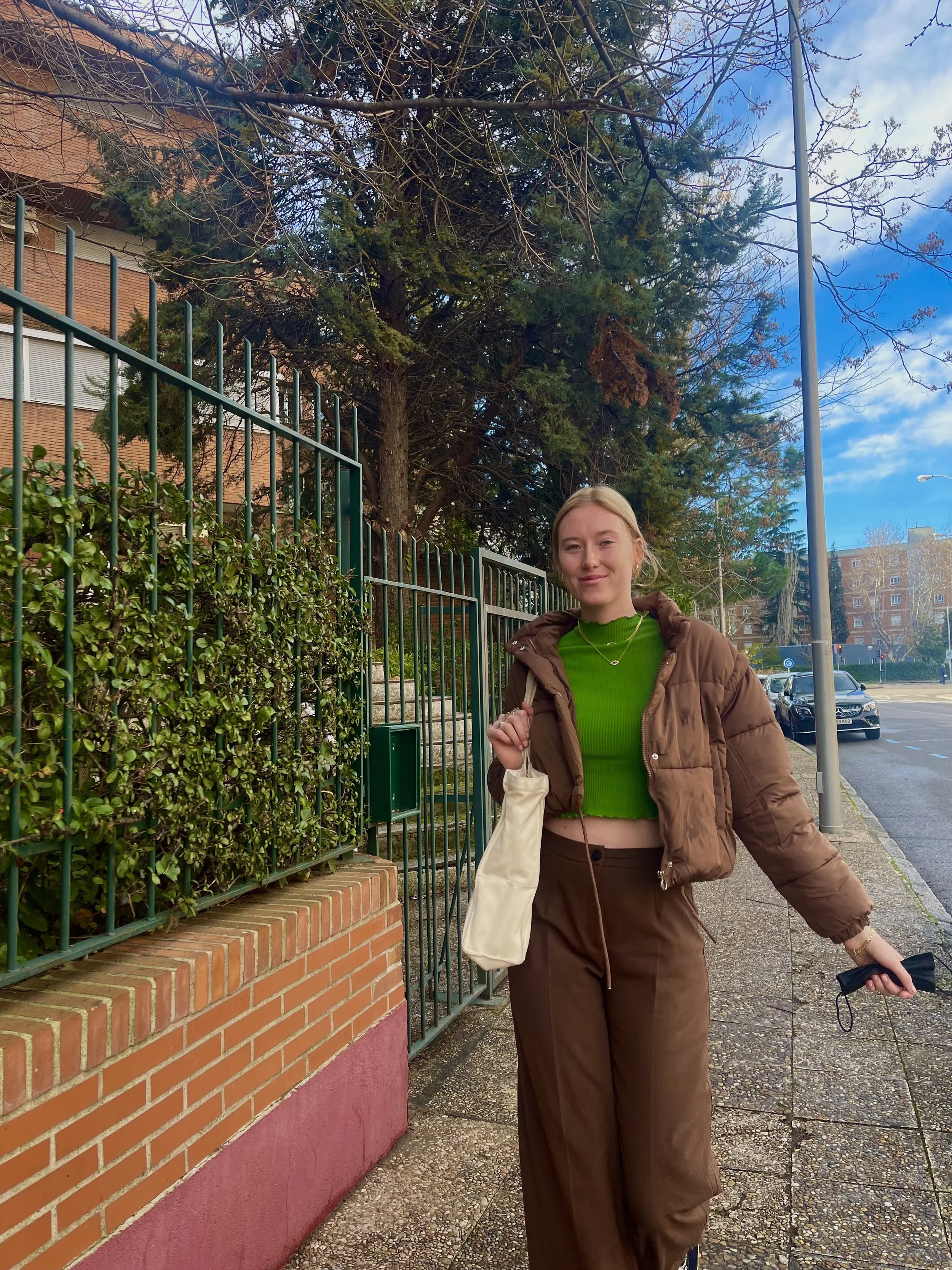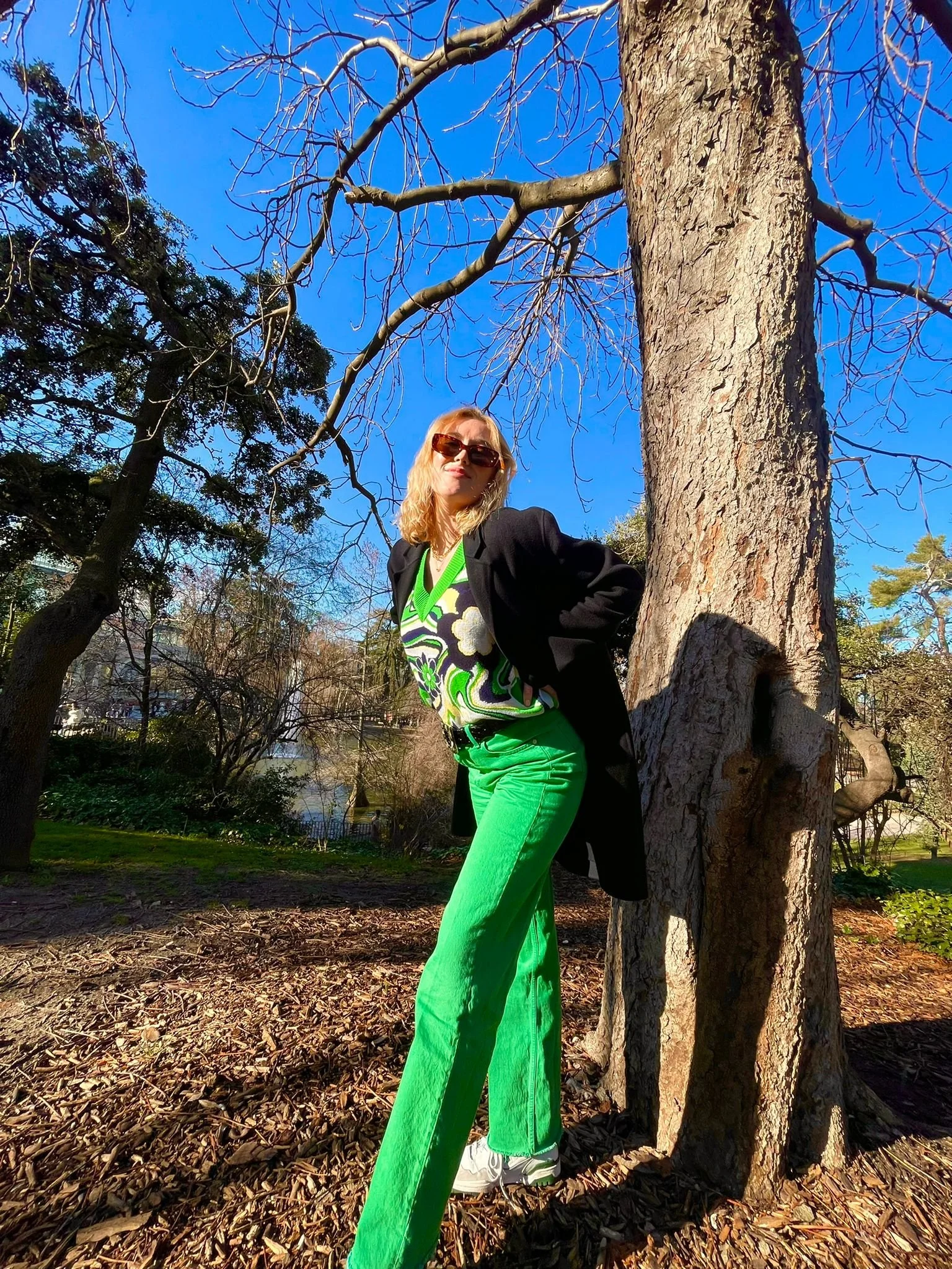 Within this look, I wanted to take a detailed vest with shades of green and pair it with full green pants. In addition, by adding a black wool coat, I payed attention to the black detail in the vest. Finally, I added the retro new balance 550 and some small dramatic glasses.